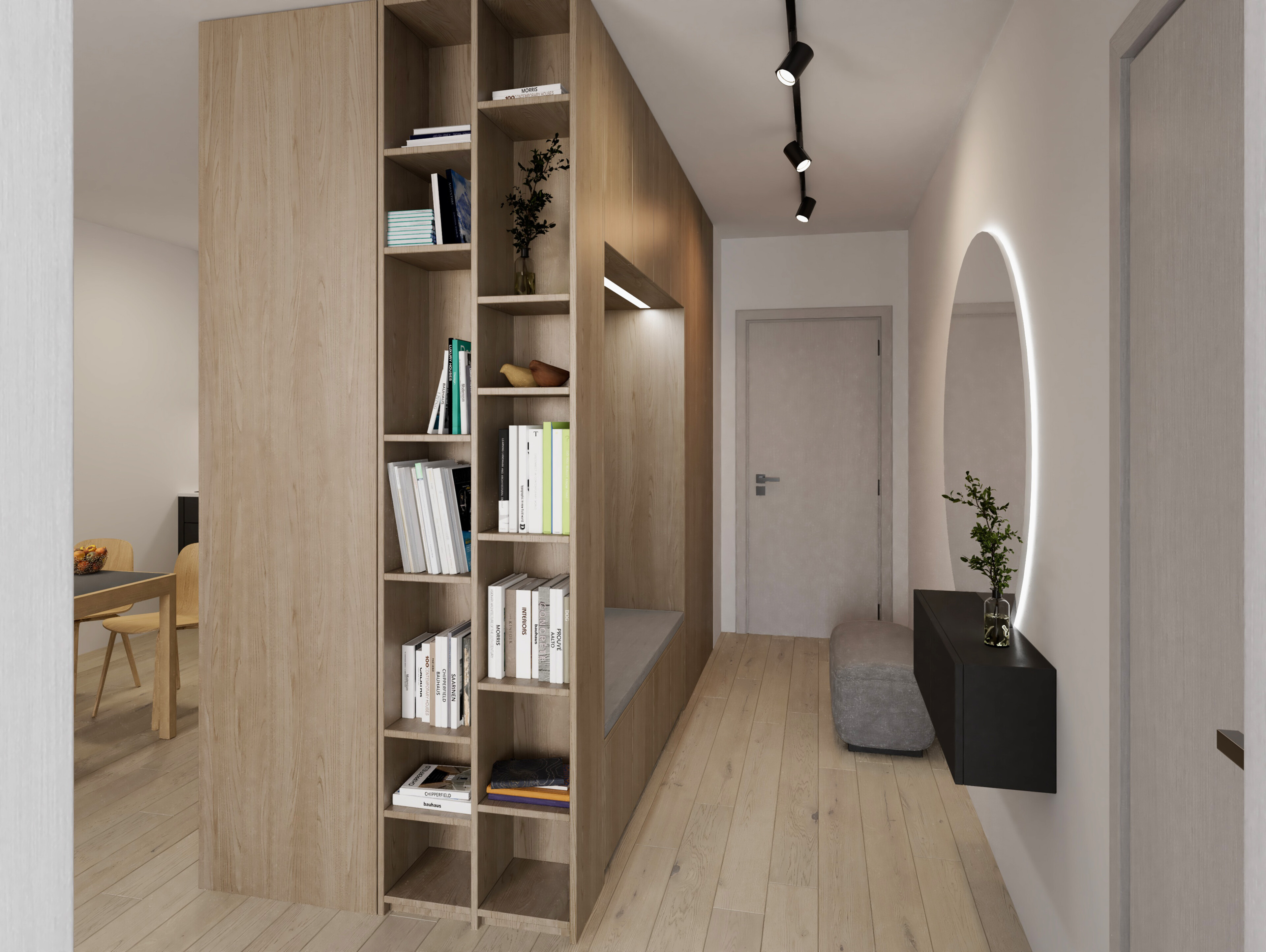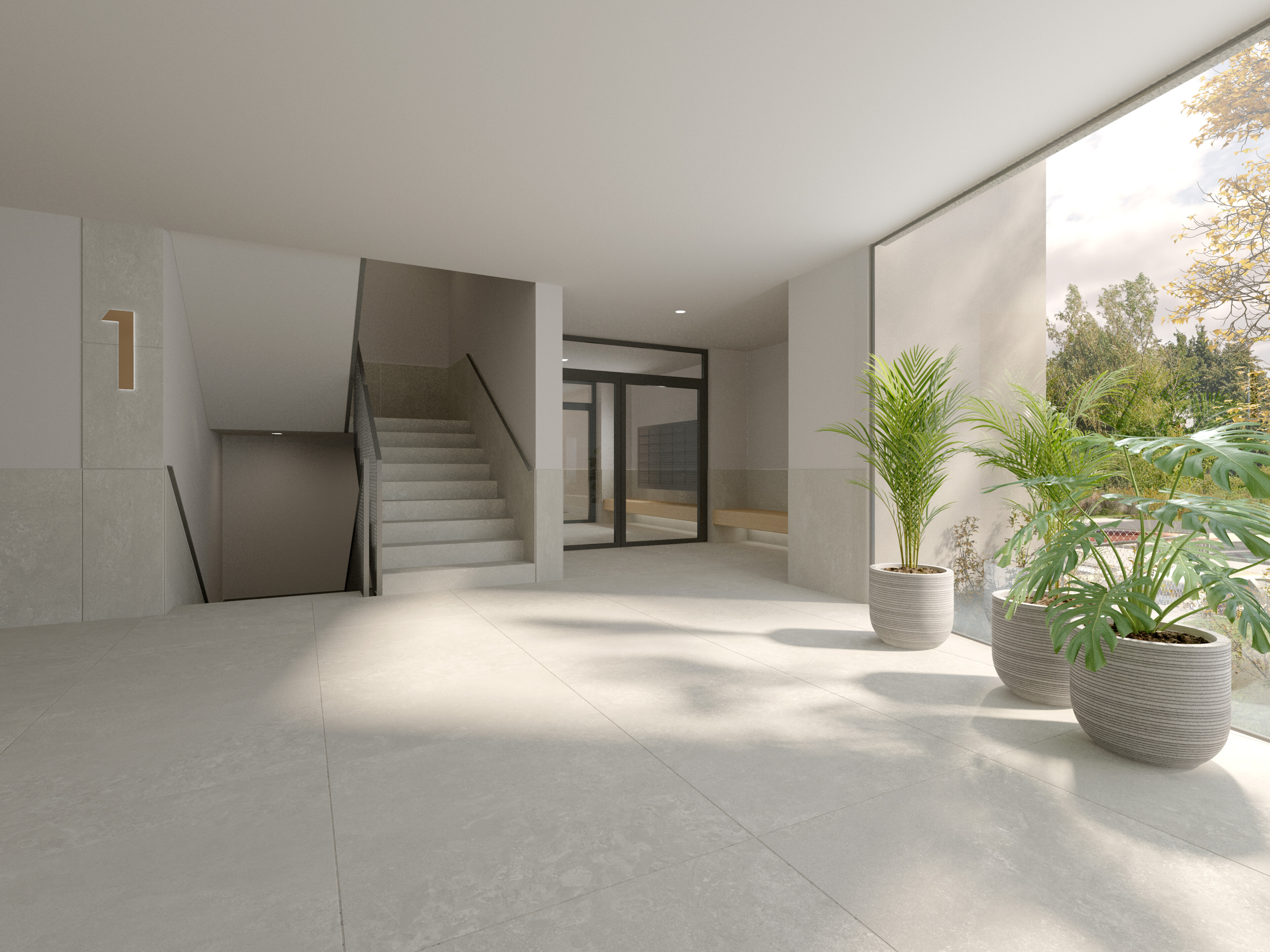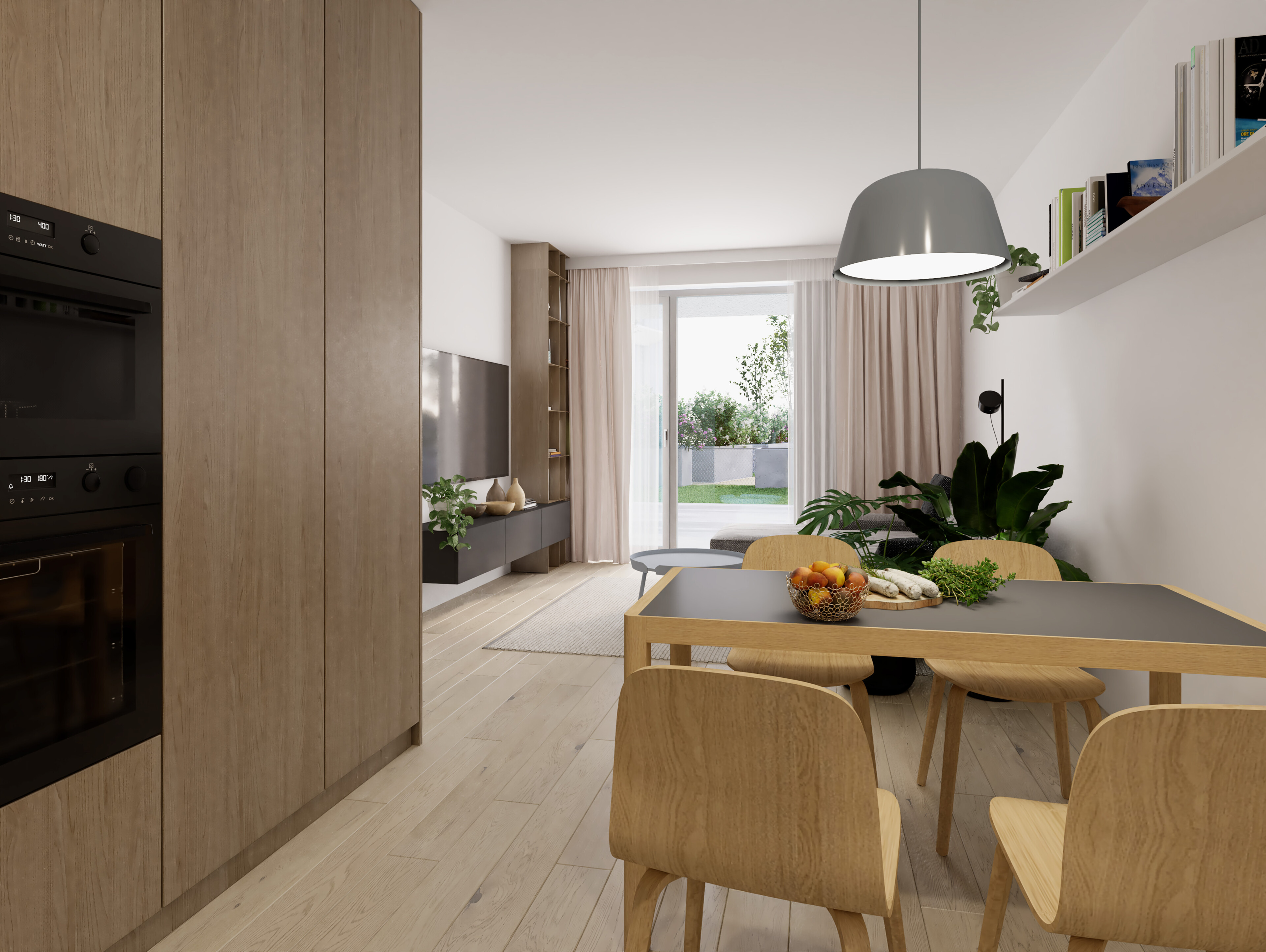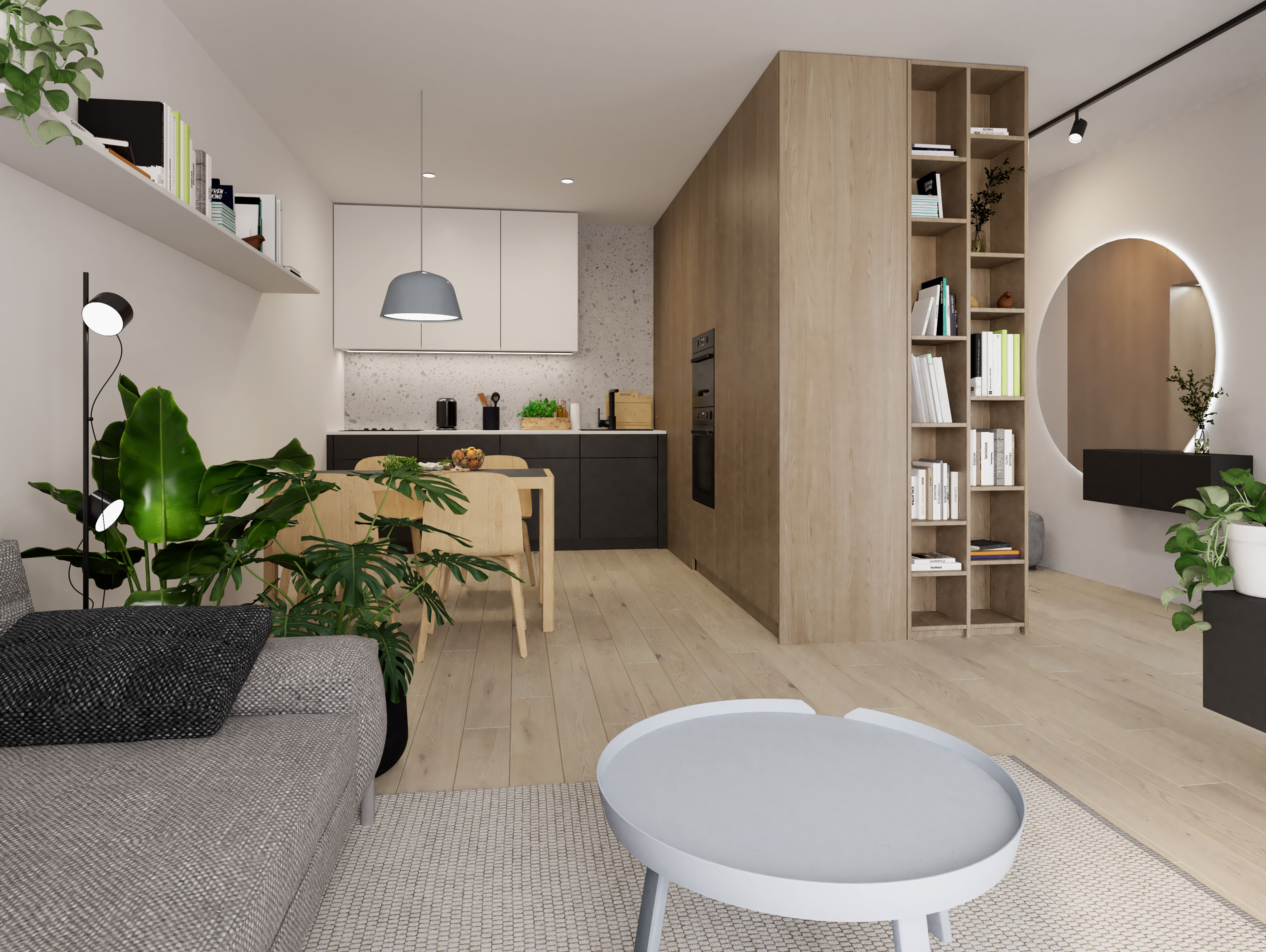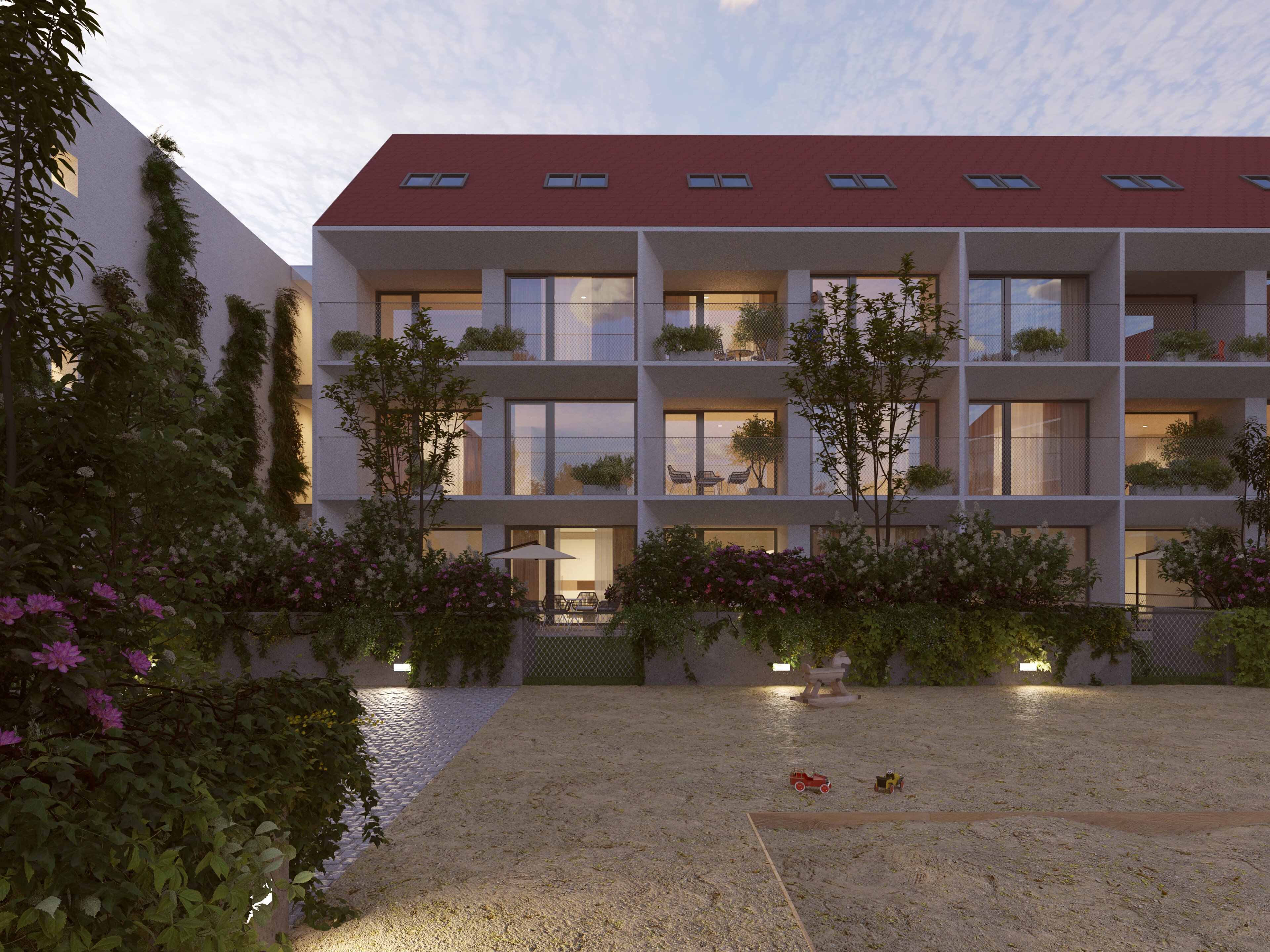 Byty jsou navrženy jako velkoryse prosvětlené, s důrazem na otevřenost a vizuální propojení interiéru s exteriérem. Obytné prostory plynule navazují na soukromé lodžie, které rozšiřují obytný prostor a zvyšují kvalitu bydlení. Kontrastním prvkem je část fasády s menšími okenními otvory, inspirovaná nedalekou historickou sýpkou, která do projektu vnáší odkaz na místní stavební tradici a zároveň podporuje rytmus a členění hmoty domu.